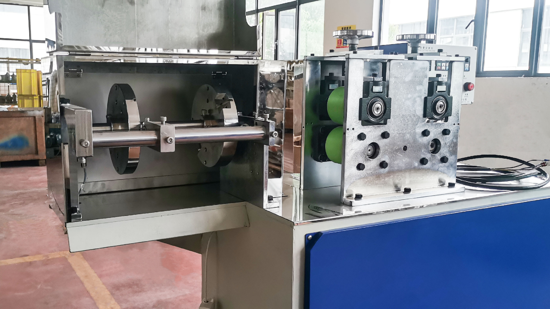 膠輪牽引切割機是專(zhuān)門(mén)用于切割生產(chǎn)不同規格口徑吸管的配套切割裝置,采用雙電機變頻牽引。雙刀盤(pán)切割,切割角度有90°/60°/45°吸管端部切口平整美觀(guān)??蛇x配有不銹鋼接料斗的皮帶理管裝置組合使用,大大降低工人勞動(dòng)強度,一人可操作多臺設備。