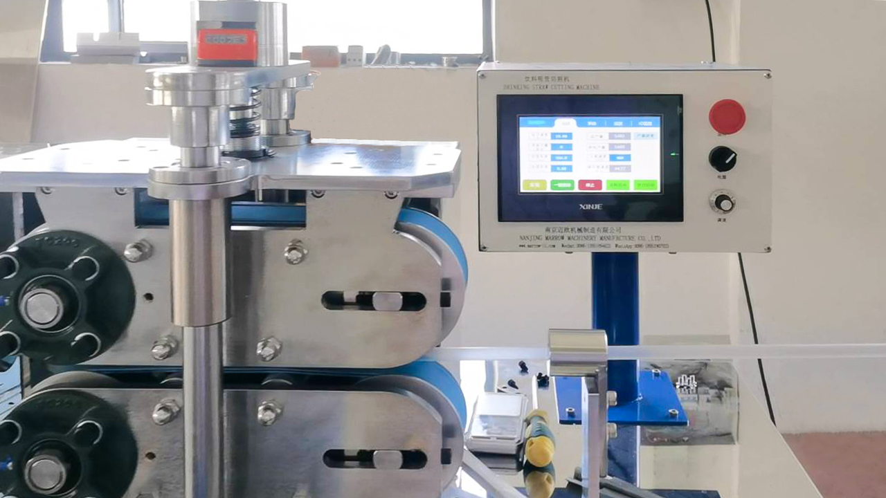 PLC+觸控屏智能控制伺服牽引切割機有皮帶牽引裝置、伺服驅動(dòng)切割、PLC+觸控屏、操作盒等部分組成,可配套各種吸管擠出機,生產(chǎn)各種顏色,各種口徑,各種壁厚,各種長(cháng)度的平口,斜口吸管吸管。